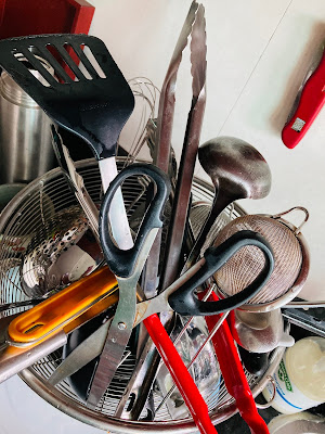 Nhân dọn dẹp thì tôi phát hiện hoá ra ông lão nhà mình có thể sánh ngang hàng với các bà nội trợ đảm đang. Đồ bếp đều là ông tha lôi, tích luỹ từ đời nảo đời nao coi như đủ cả :-)))
